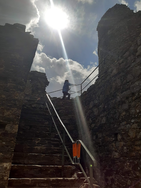 This was our "local" castle at this stay, our caravan park was less than 10 minutes away from this. Much more intact than Laugharne, and as it was mid-week we had the entire place to ourselves! We took our time looking around, although N(6) was really dubious about entering any dark spaces, and was quite keen to get out again. Possibly partly due to being cold again, as well.